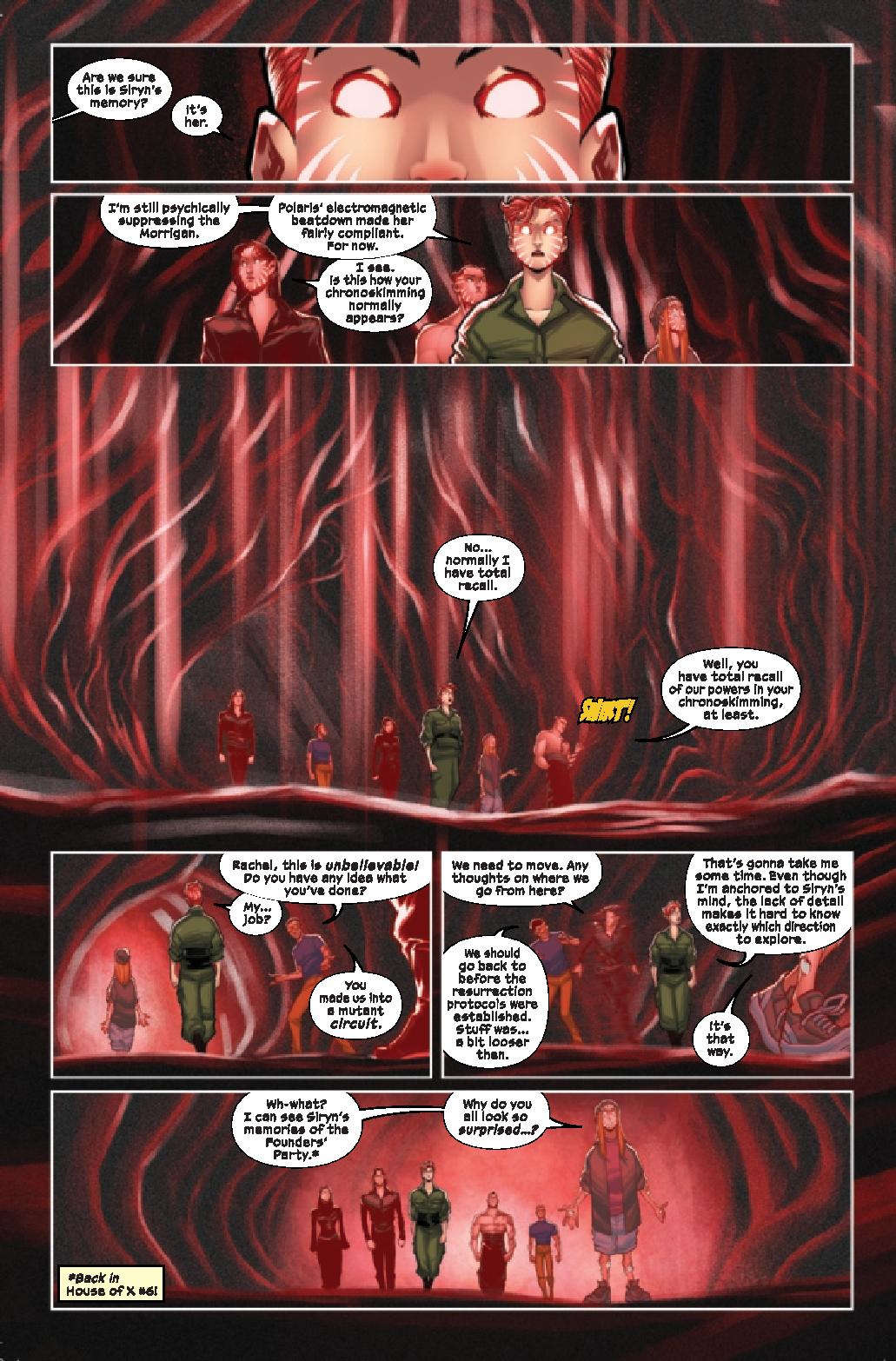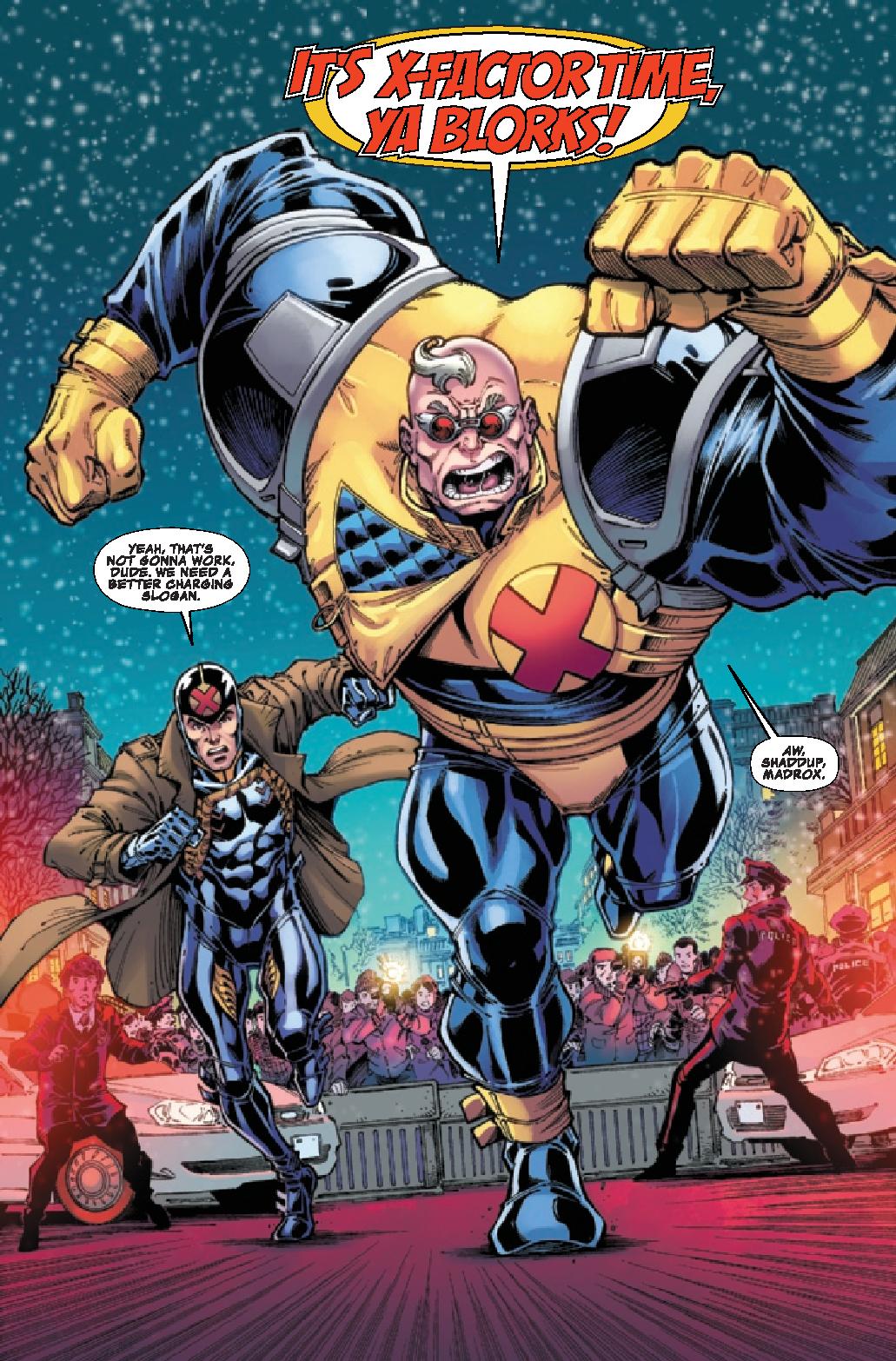 The main thing I loved about The Trial of Magneto is what a meaty read it was. Leah Williams packs those 36 pages with everything from Krakoan in-fighting to bonkers battles and characters showing off their abilities in a story relevant and finally just allowing individuals to grieve. She and Lucas Werneck take break from the “fighting Magneto/mystery solving” part of the plot to cut away to Vision mourning for his ex-wife, or Kyle comforting Speed, who stands vigil alone at his mother’s body wishing Wiccan was there to help figure things out. (He’s stuck in the current “Last Annihilation” crossover.) Williams shows great range as a writer coaxing a variety of tones from characters through her dialogue and narration with the help of letterer Clayton Cowles, who uses an all-caps font to great effect when Quicksilver becomes totally consumed by grief and rage. She has spent time developing the cast of X-Factor, and they are ready to be put in a stressful situations like where Magneto saying Polaris is “unhinged and inconsistent” hurts more than any metal claws or piece of debris. Northstar’s leadership abilities (and super speed) come into play as he is sassy towards the interfering X-Force and X-Men while saving the day and preventing Quicksilver from bludgeoning his father to death. Like a proper crossover/event miniseries, The Trial of Magneto has a large cast of characters, and they all get to shine.