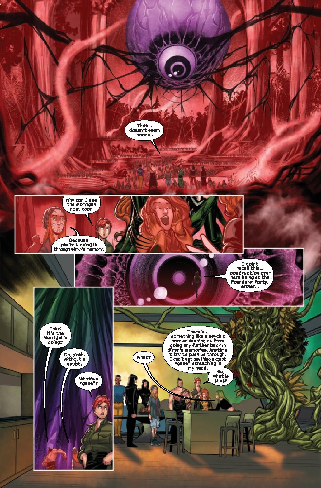 Trial‘s strong characterization extends to the art where Werneck sets up some iconic panels like Laura, Logan, and Akihiro all leaping into the master of magnetism with quips and a devil-may-care attitude. I love how Wolverine doesn’t give a damn that Magneto pulled out his adamantium skeleton back in the 1990s and is just there to run interference while the next generation does the ass kicking. This bond between the claw mutants is nicely set up earlier in the comic when Laura and Logan basically finish Akihiro’s sentences as he figures out how Wanda was murdered. Edgar Delgado’s colors come in handy during the forensics sequences differentiating between the past and present using a sad red that comes back towards the end of the book where Toad, Mastermind, Blob, and Quicksilver are drinking and grieving. They’ve come a long way from the schemes and overwrought dialogue of the Silver Age and pack a real emotional punch while Leah Williams’ narration verbally captures the mood of the scene. The tiki bar has turned into a wake.