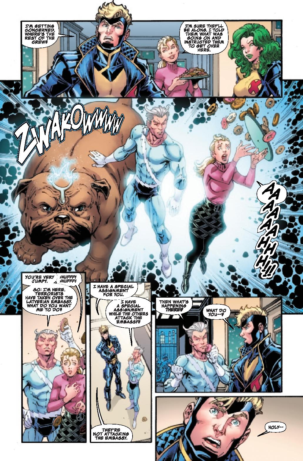 Connected to grief and emotions, The Trial of Magneto also has a lot of rage beginning with Magneto tossing his helmet to the side during a Quiet Council in an aerial panel from Werneck. He has had enough and is total unchecked id who just wants to resurrect his daughter because mutants are beyond such petty things as life and death. And getting egged on by Mystique and other members of the Quiet Council doesn’t help things. Williams’ writing for Magneto can be described as majestic and blunt as he says whatever he feels about everyone around him and fights the combined forces of X-Force, X-Factor, and X-Men featuring some big damn, wallop-packing panels. There are also some chilling panels of Krakoans celebrating her death while Magneto listlessly walks by that are probably the most disturbing scenes in a bleak comic.However, the show is almost stolen by Quicksilver, who immediately becomes this series’ beating heart and shows how much folks really cared about Wanda even though she was seen as a pariah on Krakoa.