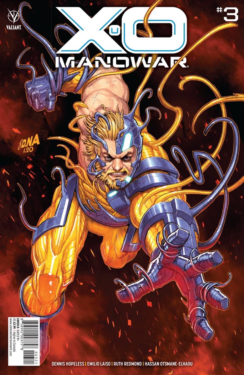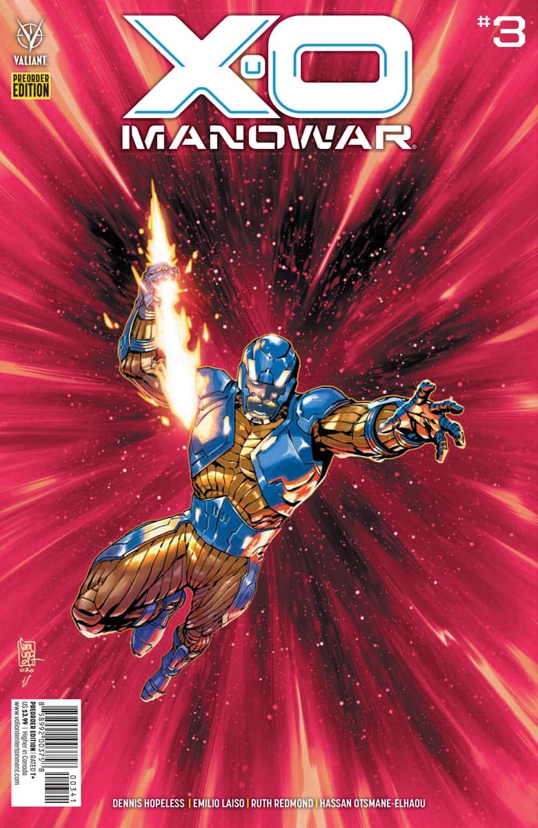 Harvey Award-winning writer Dennis “Hopeless” Hallum and breakout star Emilio Laiso unleash Valiant’s most powerful protector! Torn from the past and bonded with a living alien armor, will X-O Manowar become the hero the world needs now? As a futuristic force arises to destroy the planet, only this ancient warrior king has the courage to stand against impossible odds!