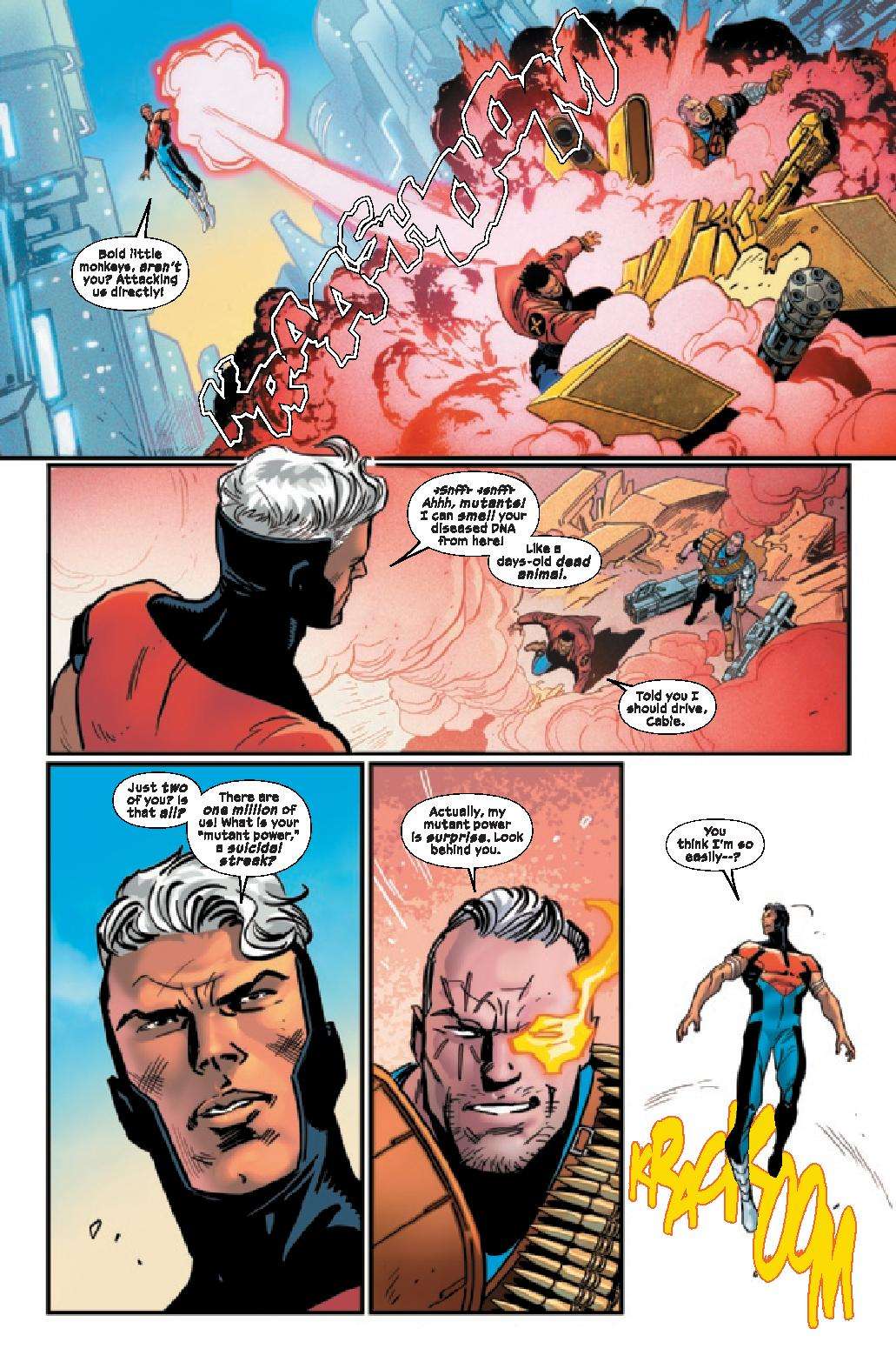 CHILDREN OF THE END! The beings raised in the artificial world of the Vault have known since their first breaths that they stood to inherit the Earth. They just didn’t think mutantkind would make it so easy for them. With only Cable and Bishop to stand in their way, the end of human- and mutantkind both is at hand.