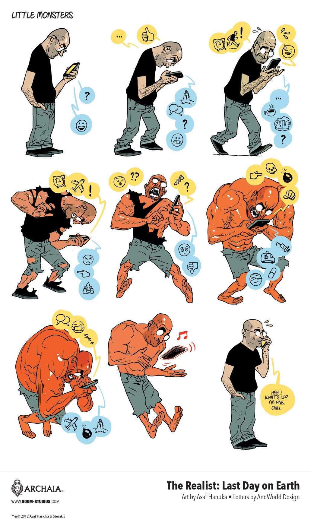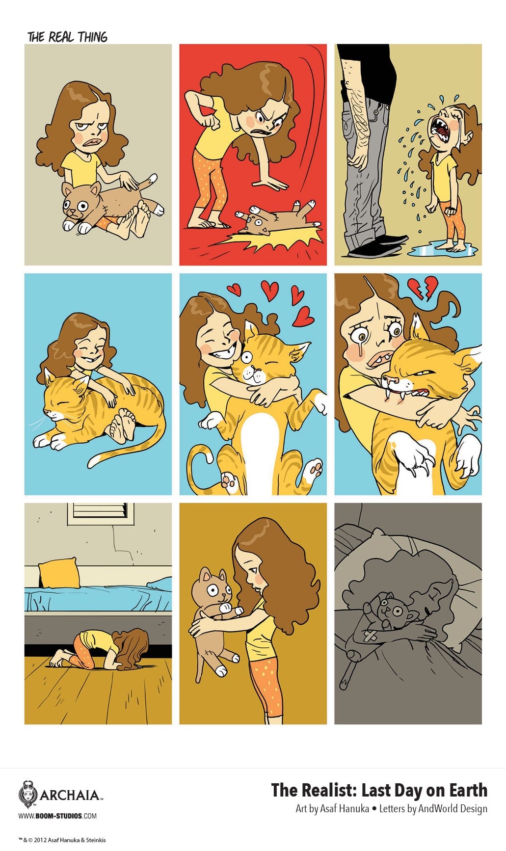 BOOM! Studios has released a new look at The Realist: Last Day On Earth, a new original graphic novel from Eisner Award-winning series of New York Times bestselling cartoonist Asaf Hanuka, translated from Hebrew by Yardenne Greenspan and lettered by AndWorld Design, that presents the long-awaited third collection of the New York Times bestseller and Eisner Award-winning cartoonist’s autobiographical weekly strips! Available on June 22, 2022 in comic shops and on June 28, 2022 in bookstores.
