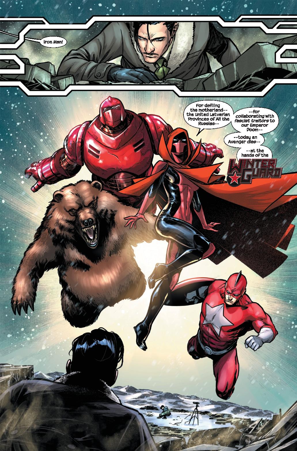After witnessing firsthand the devastation of war, Tony Stark famously divested his company from the weapons trade. Then Orchis and Feilong came along, and a furious Iron Man watched them dismantle his legacy. Now Stark Unlimited is going back to its roots as Tony publicly announces a FULL-SCALE RETURN TO WEAPONS MANUFACTURING! What?! Why is Iron Man meeting with rebels outside Latveria? Why is the Winter Guard after him (this time)? Why is Doctor Doom sending angry emissaries to Stark’s door?