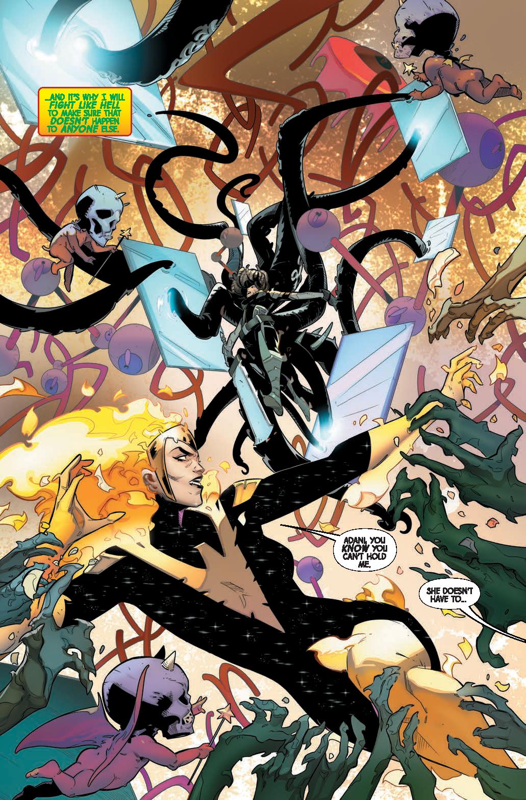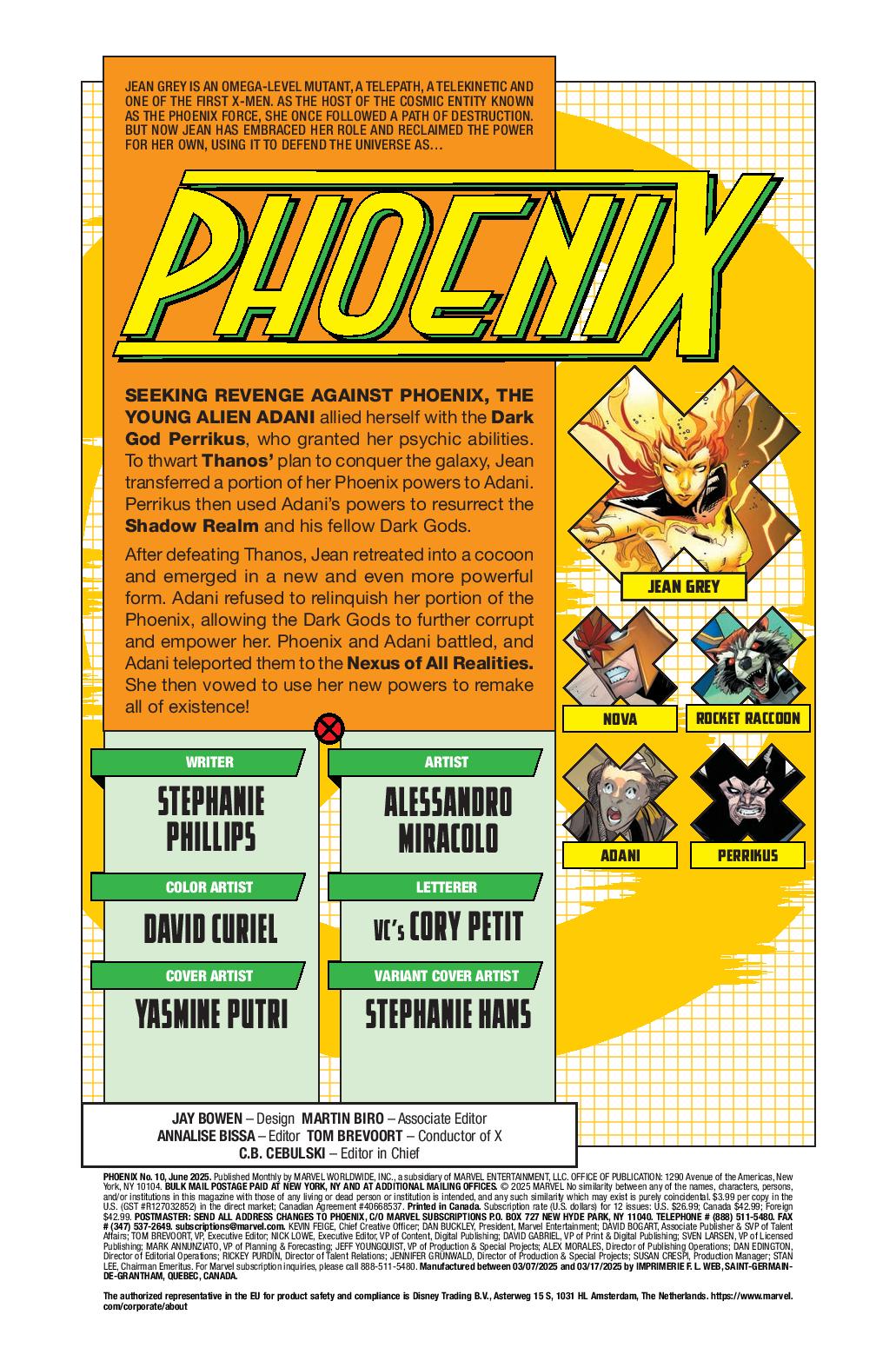 JEAN GREY has ascended to her most powerful form ever, but she’s going to need every ounce of her strength to defeat ADANI, whose connection to the PHOENIX FORCE – and to Jean’s psyche! – makes this battle exceptionally dangerous!
