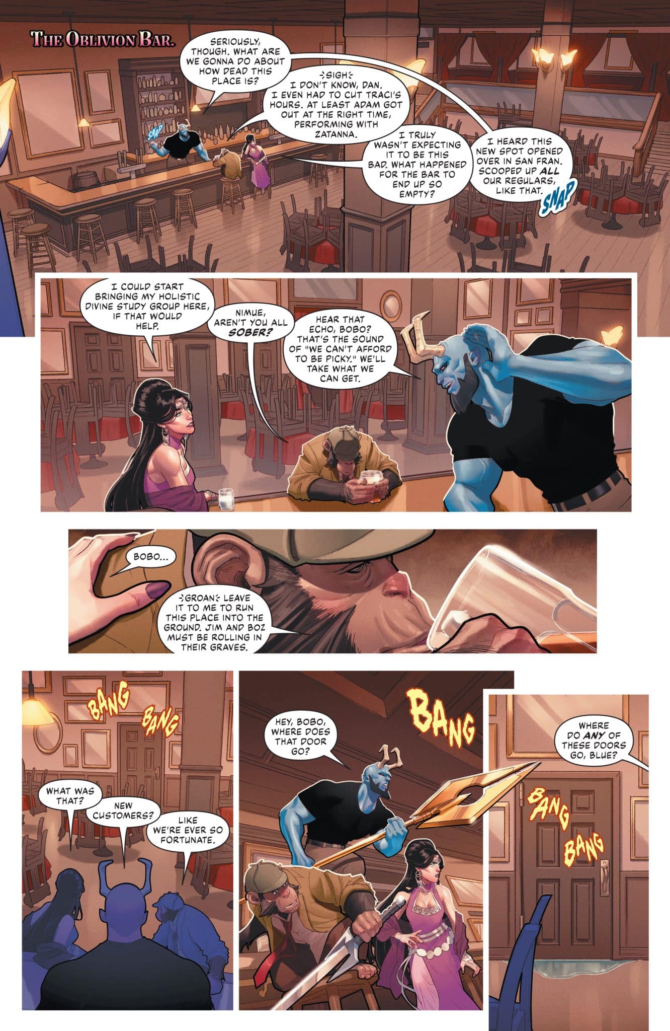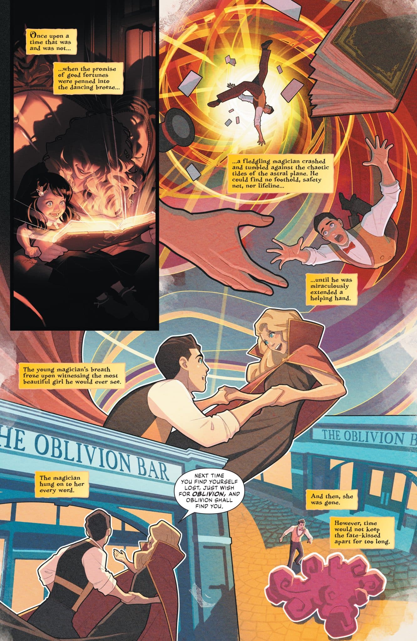 Even though it’s a little thin on story, the new Zatanna solo series is a visual feast from writer/artist Jamal Campbell. After an enigmatic first few pages featuring light and dark princesses and flashbacks to pivotal moments in Zatanna’s character history (The death of her father Giovanni Zatara, when she joined the Justice League of America.), Zatanna #1 focuses on the preparation behind her latest magic show at San Francisco’s Terpsichore Theater. However, it all goes awry when long-dead actor/artist/dancer/singer/multi-hyphenate Lady White appears and whisks all of Zatanna’s crew members to different types of movies. What follows is a love letter to classic Hollywood cinema and spectacle as Campbell captures what it’s like to actually experience magic.