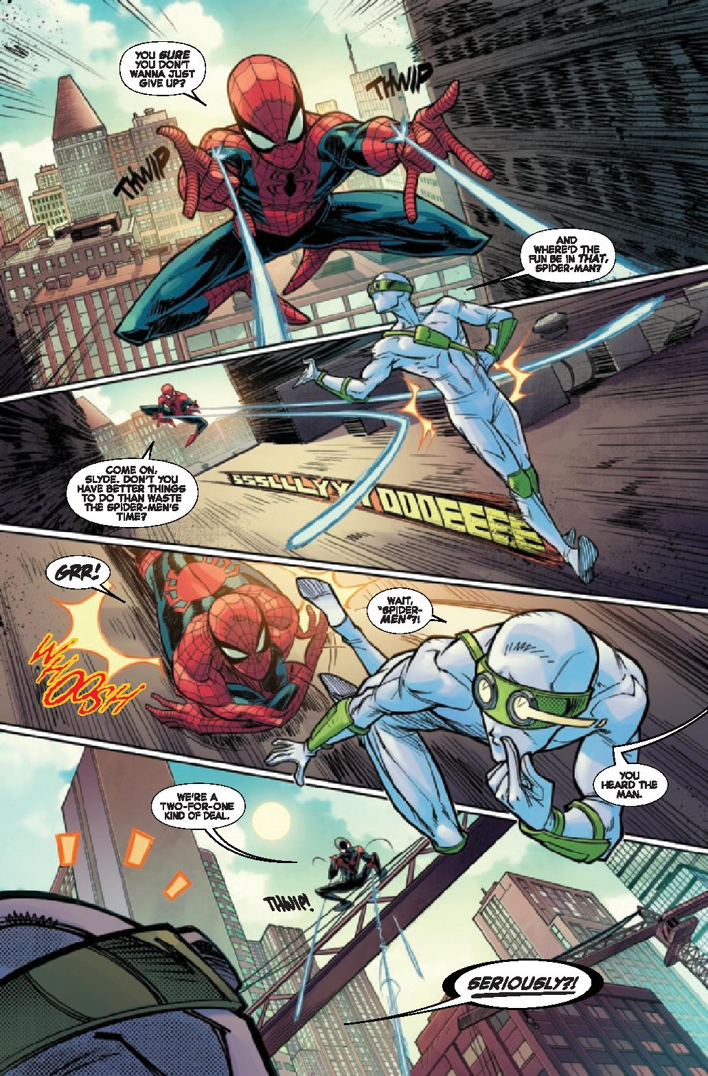Battle lines are drawn, with Spidey and his crew being the only ones who can save all of New York City from the worst super criminals to ever super criminal! But is Tombstone on THEIR SIDE?! And you won’t believe your eyes reading the last page of this issue!